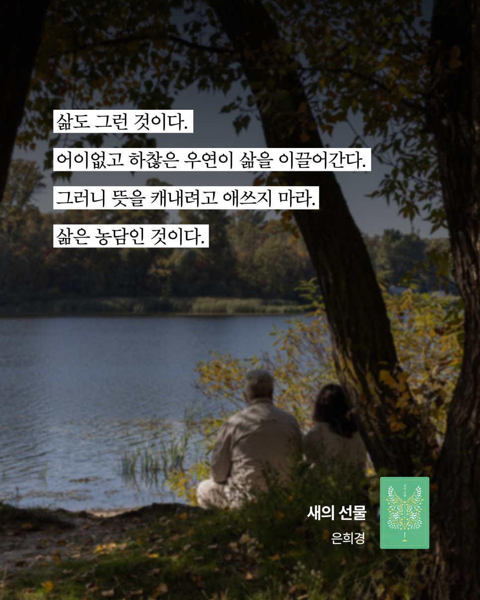 은희경 작가의 《새의 선물》은 그런 책이에요. 지나온 시간을 돌아보게 하고, 말로 설명하기 어려운 감정에 이름을 붙여주는,