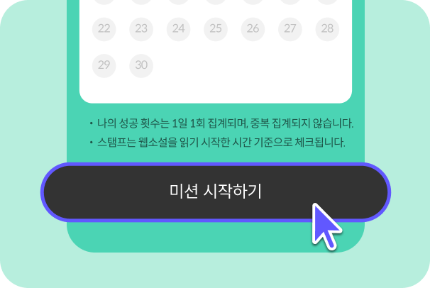 [미션 시작하기] 버튼을 누른 뒤 읽은 횟수만 집계됩니다.