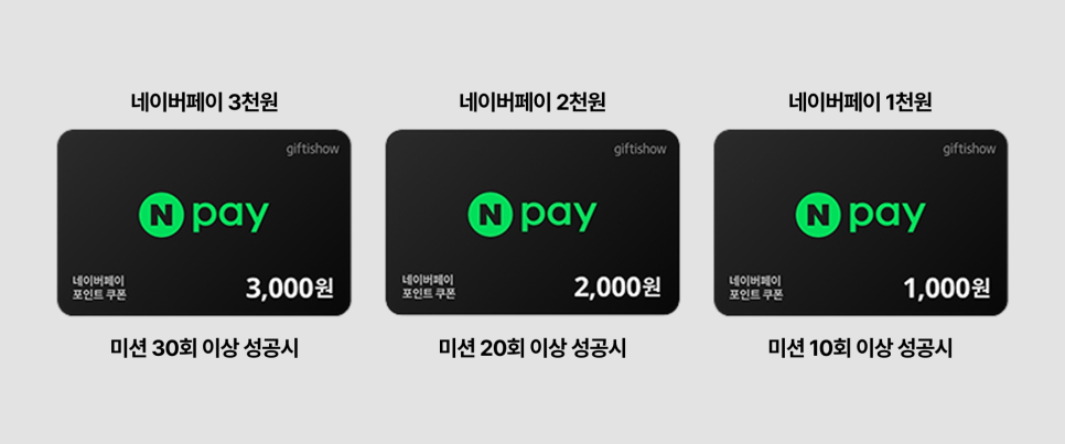 미션 30회 이상 성공한 전원에게 네이버페이 3천 원 증정