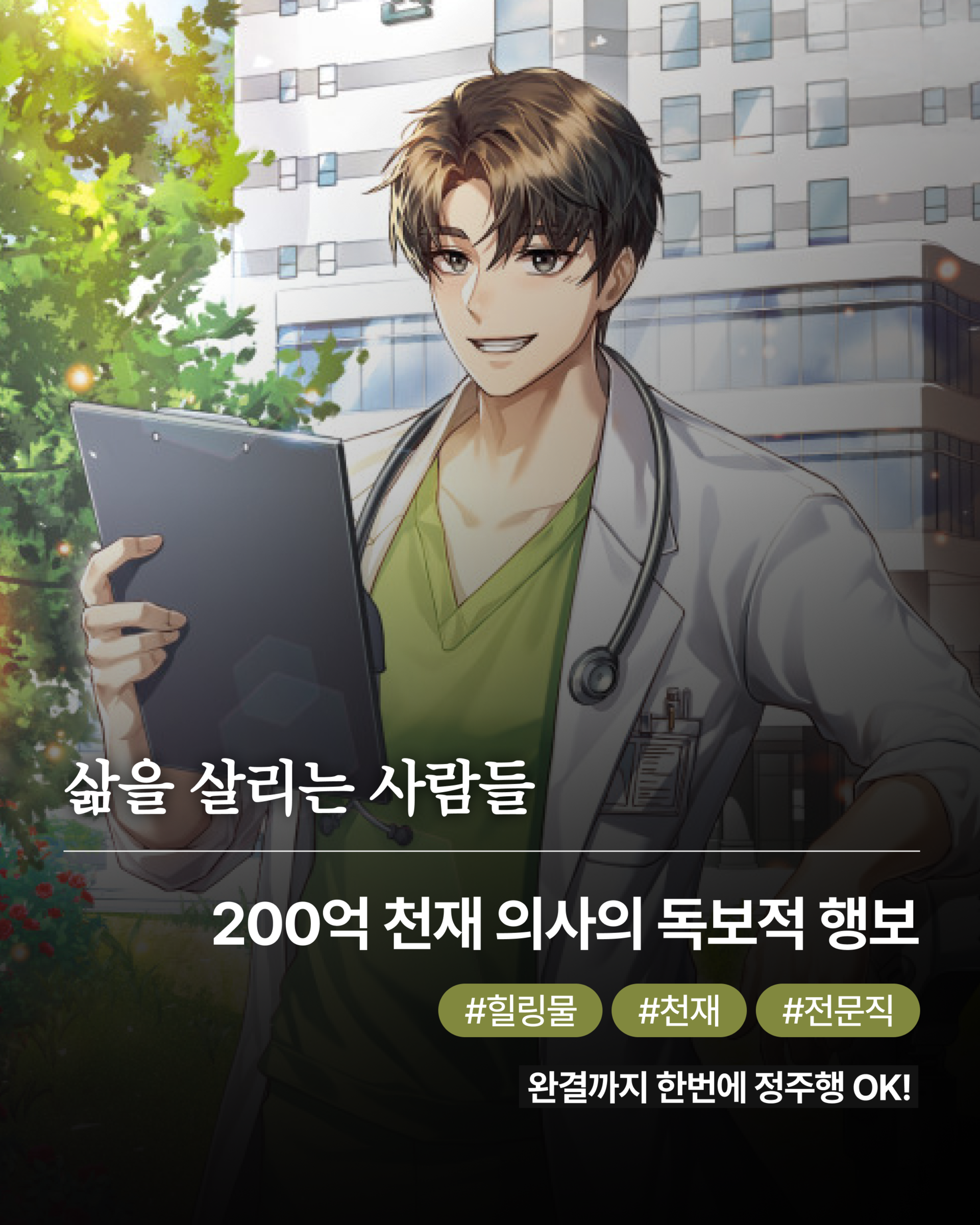 미국에서 인턴 생활을 하던 천재 의사 강단이 존폐 위지에 처한 재활병원을 살리기 위해 한국으로 귀국하며 펼쳐지는 이야기를 다룬 작품이예요. 병원 존속을 위해 투자 유치, 의료 시스템 개선 등 현실적인 난관을 맞닥뜨리며 삶을 살리는 진짜 의미를 고민하게 되는 성장형 서사를 만나볼 수 있습니다. 특히 직업적 사명감과 개인적 성장 사이의 균형이 돋보이는 《삶을 살리는 사람들》은 현실에 부딪치는 주인공의 내적갈등을 통해 단순한 성공 소설을 넘어 내적 성장까지 이끌어주는 동기부여를 받을 수 있을거예요.