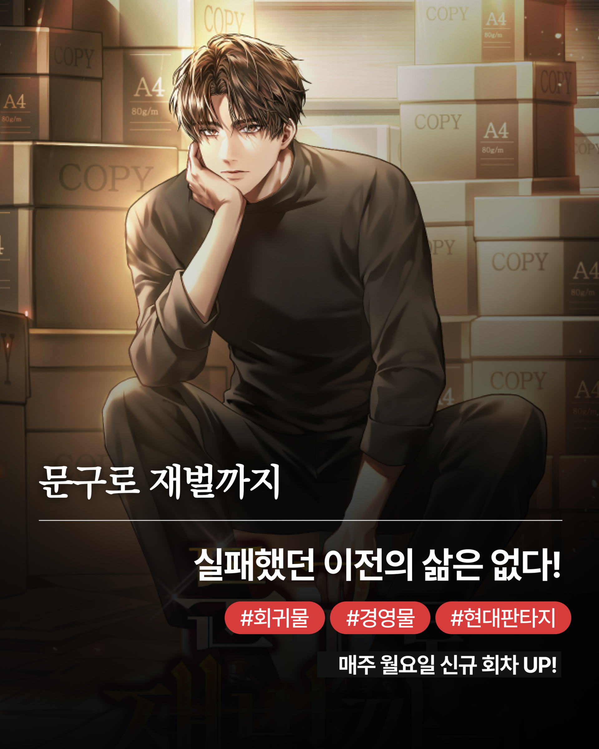 폐업 직전의 문구점을 운영하던 동식이 과거로 돌아가 다시 한 번 문구 사업에 도전하며 재벌로 성장해 가는 회귀물 웹소설입니다. 소소한 아이디어에서 출발해 끈기와 전략으로 성과를 만들어가는 과정이 현실적으로 그려져 공감을 자아내요. 주인공의 좌절과 재도전, 그리고 점진적인 성공을 보여주는 이야기의 흐름이 또렷해 쉽게 몰입 가능하며, 사업가로서의 마인드셋과 성장 서사가 자연스럽게 녹아 있어 새해 목표를 다잡고 싶은 분들께 특히 동기부여가 될 작품이에요.