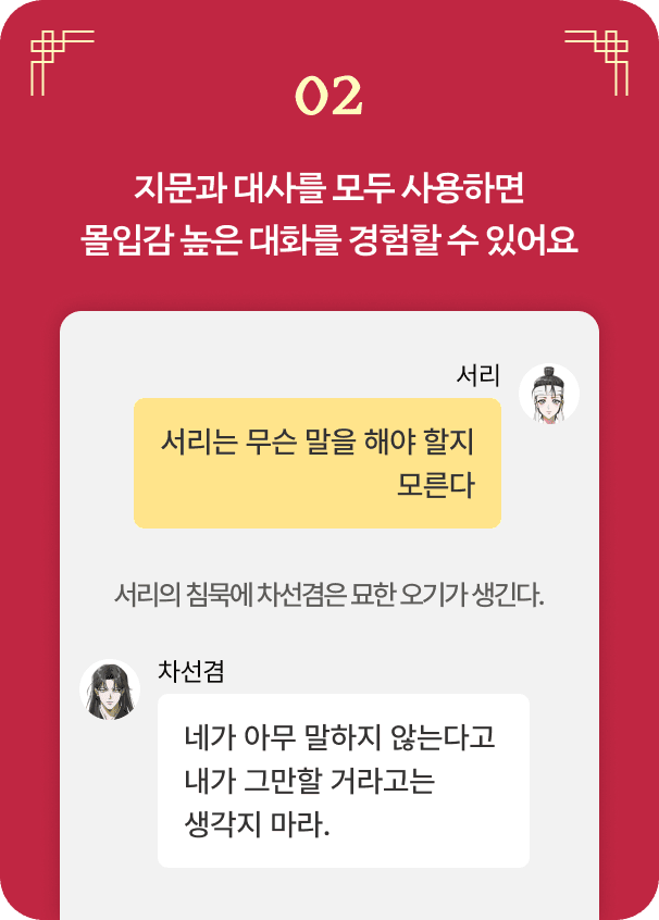 STEP2. 지문과 대사를 활용해 몰입감 높은 대화를 경험해 보세요